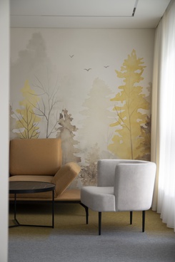 В рамках проекта также преобразовывались пространства комнаты отдыха и личного санузла.